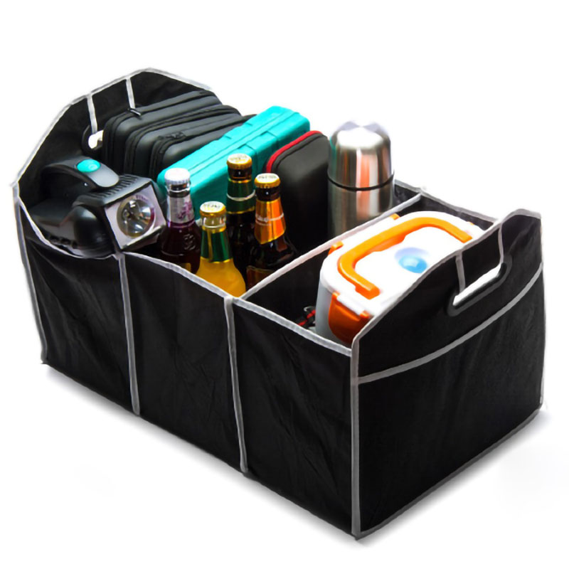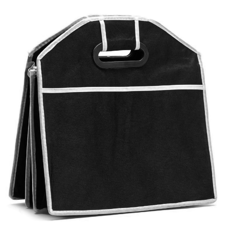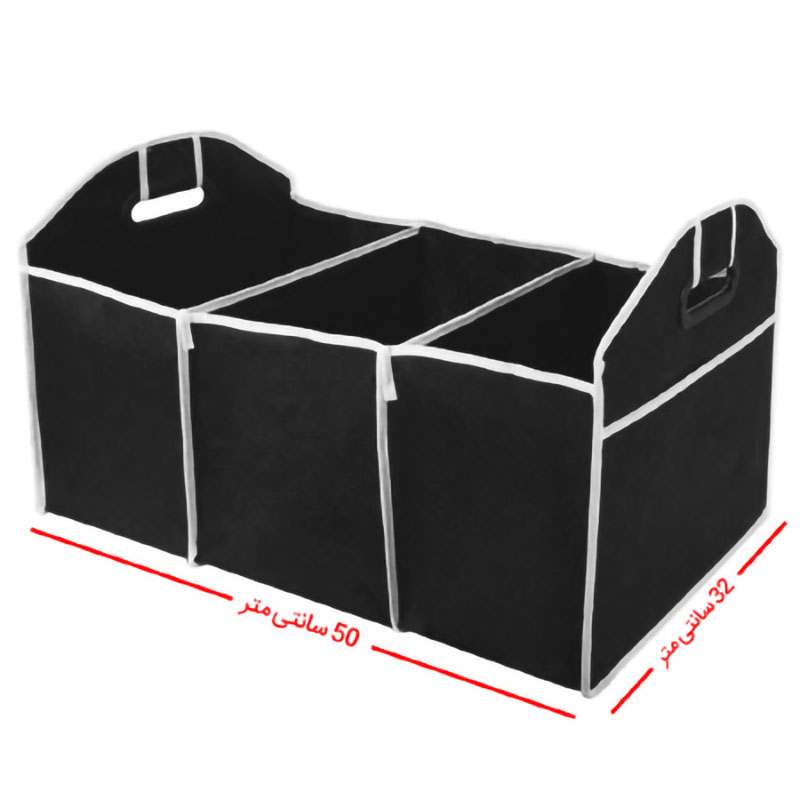 کیف نظم دهنده اتومبیل یکی از کاربردی ترین لوازم خودرو می باشد که امکان ساماندهی صندوق عقب خودرو را با سرعت بالایی فراهم می کند و از بهم ریختن لوازم موجود در صندوق عقب خودرو جلوگیری می کند. این محصول دارای 3 جیب بزرگ می باشد که برای لوازم بزرگ و خرید ها می باشد و دو جیب کوچک نیز در دو طرف آن تعبیه شده است که برای لوازم و ابزارهای کوچک مناسب است. دو طرف کیف نظم دهنده دو دسته محکم تعبیه شده است که به شما امکان بلند کردن و حمل کیف را می دهد. جنس بدنه محصول از برزنت نرم درجه یک دور دوزی شده می باشد به رنگ مشکی می باشد. این محصول کاملا تاشو بوده و در صورت عدم نیاز می توانید آن را جمع کنید که ضخامت بسیار کمی پیدا می کند.